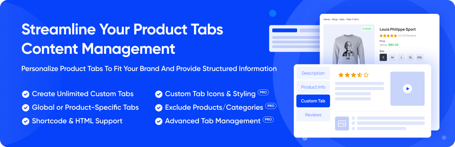 A customizable plugin to create and manage WooCommerce product tabs and WordPress tabs to organize content.
