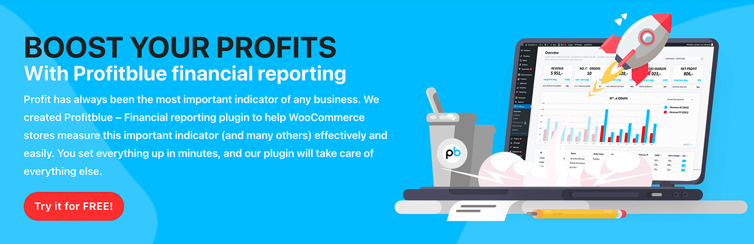 wordpress.org/plugins/profitblue-financial-reporting-for-woocommerceProfitblue is an advanced financial reporting tool for WooCommerce. With this tool, even small and medium-sized companies can measure their profit.