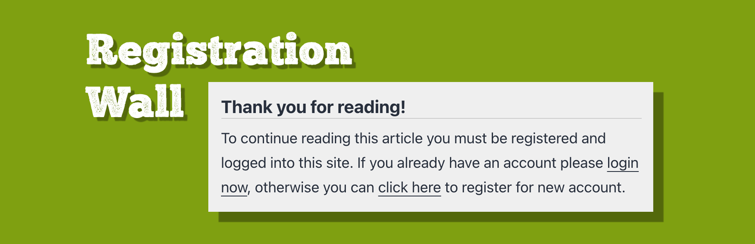 wordpress.org/plugins/registration-wallQuickly and easily add a registration wall to your website to protect content.