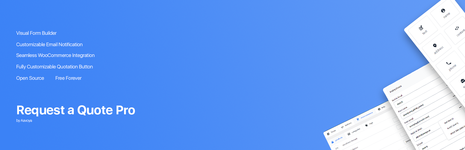wordpress.org/plugins/request-a-quote-pro-by-aavoyaRequest a Quote Pro by Aavoya WooCommerce plugin enables your customers query for an estimate of a list of products they are interested.