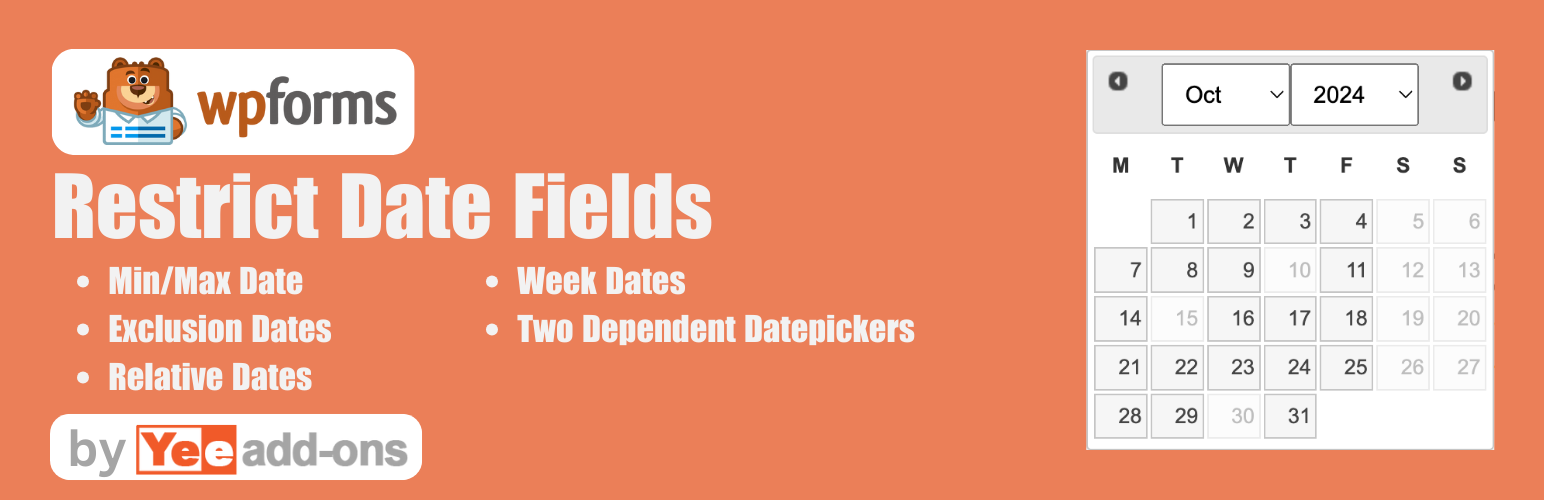 wordpress.org/plugins/restrict-date-for-wpformsRestrict Dates is a WPForms add-on that restricts users from selecting specific dates in your WPForms date picker field.