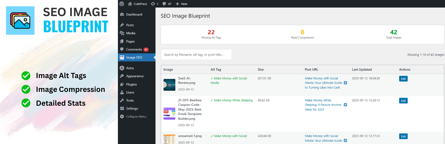 SEO Image Blueprint – Insert missing Alt Tags and Compress images for SEO Alternatives