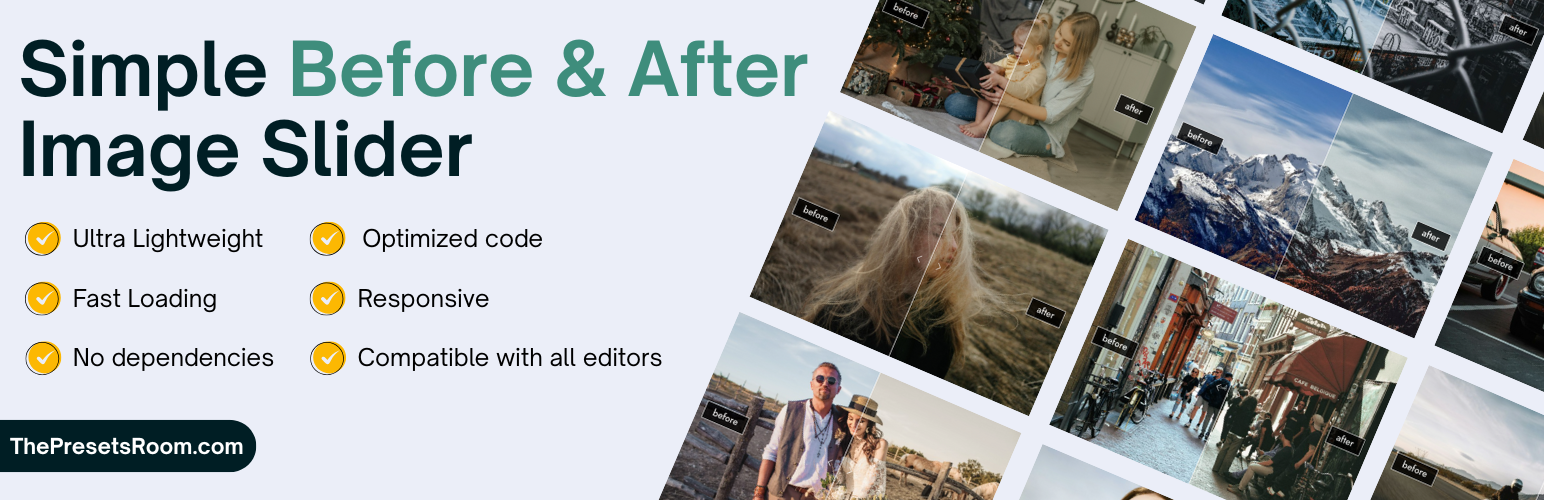Professional before & after image comparison slider for WordPress. Create engaging visual comparisons with an intuitive drag & drop interface.