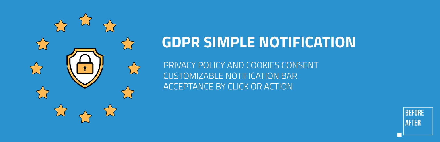 wordpress.org/plugins/simple-cookie-notificationGDPR Simple Notification is a lightweight plugin inform users about using cookies and about your privacy policy according to GDPR privacy policy