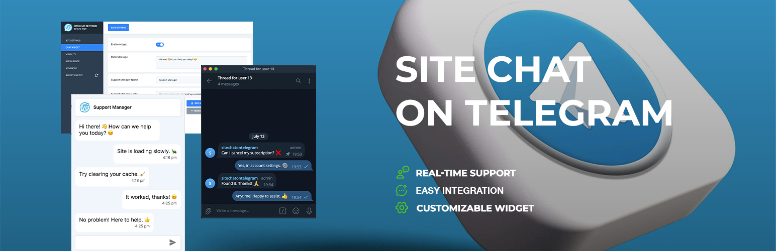 wordpress.org/plugins/site-chat-on-telegramIntegrate a support chat on your website with Telegram. Customers message via chat widget; admins reply in Telegram.