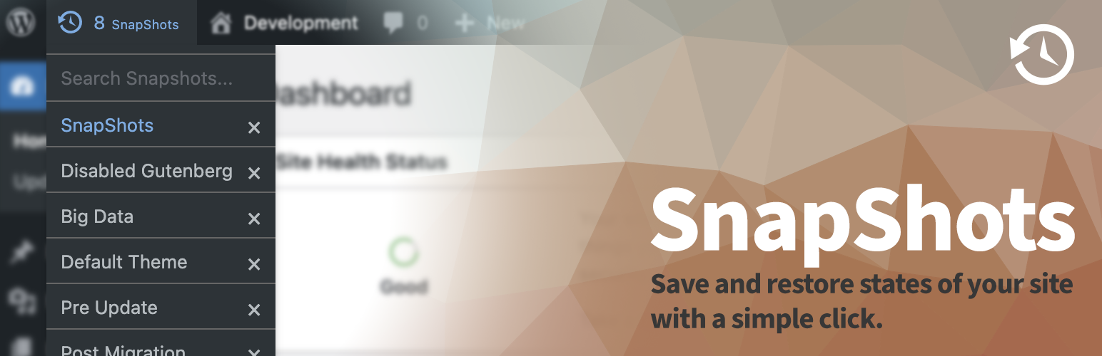 wordpress.org/plugins/snapshotsQuickly Create SnapShots of your development sites and restore them with a click.