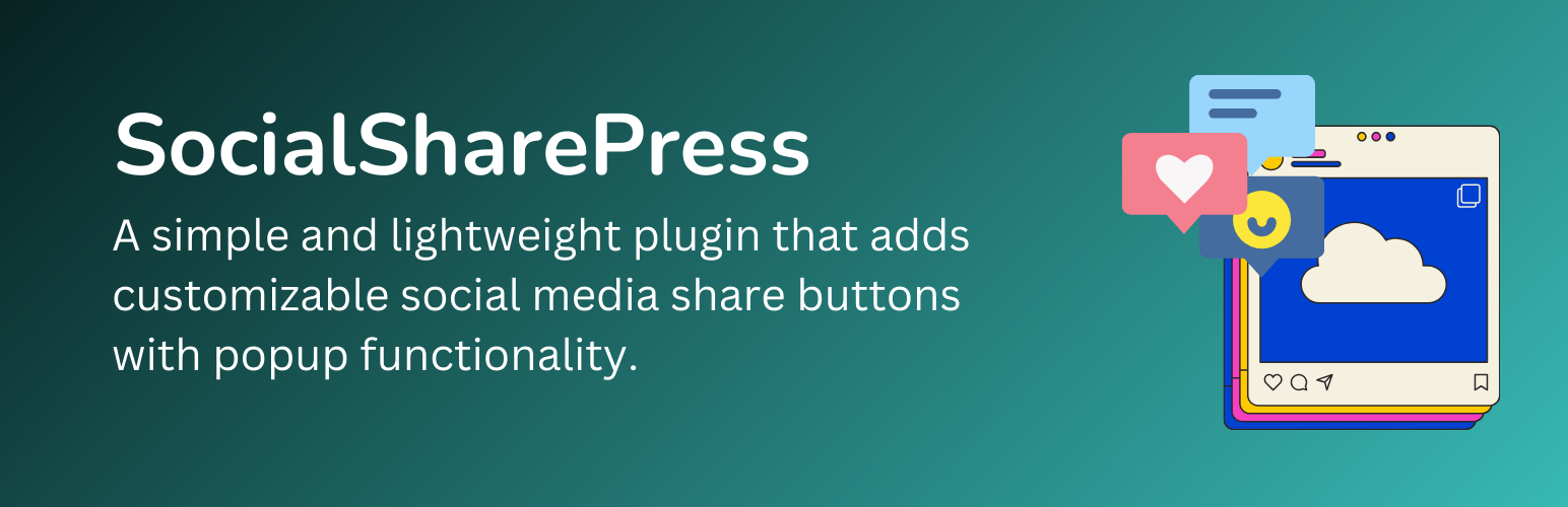 wordpress.org/plugins/social-share-pressA simple and lightweight plugin that adds customizable social media share buttons with popup functionality.