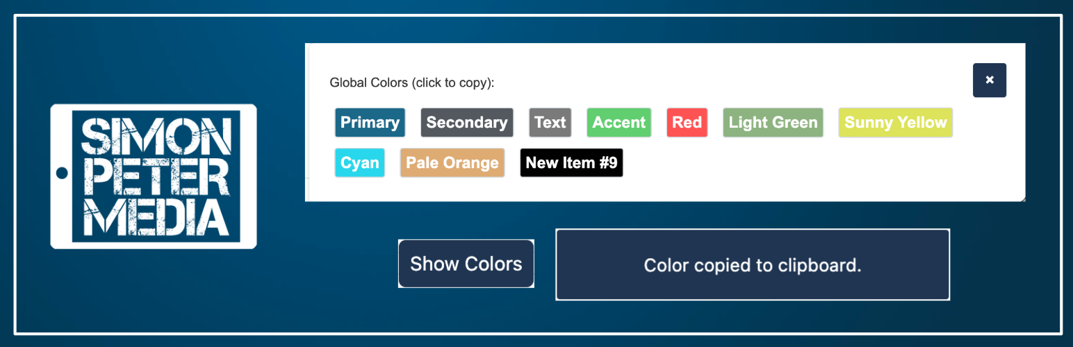 wordpress.org/plugins/spm-show-colors-for-elementorCopies Elementor global or custom HEX color value to clipboard.