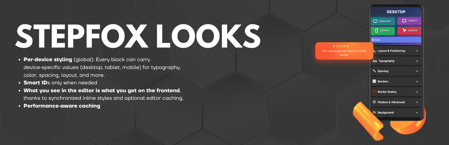 wordpress.org/plugins/stepfox-looksEnhances the block editor with responsive controls, custom blocks, and extensions for modern magazine and news sites.