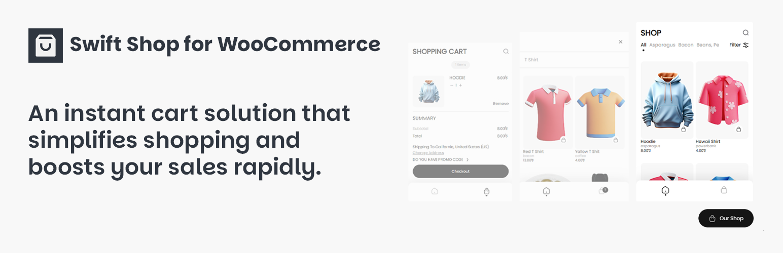 wordpress.org/plugins/swift-shop-for-woocommerceShort Description: Transform your WooCommerce store with Swift Shop, the fastest React JS based solution for smooth shopping and checkout experiences!