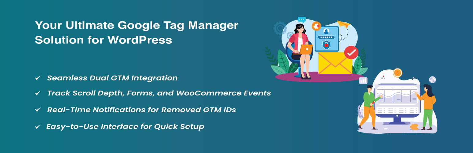 wordpress.org/plugins/tag-syncerEasily integrate Google Tag Manager with tracking for scroll events, forms, and WooCommerce, all manageable from the WordPress dashboard.