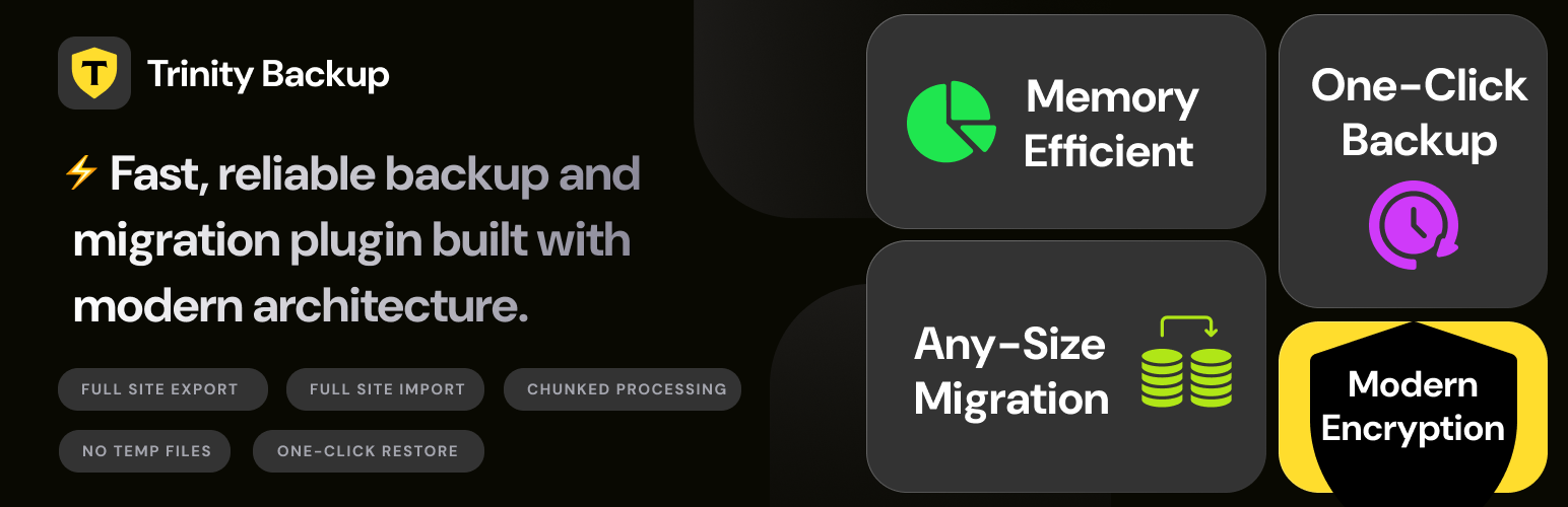 wordpress.org/plugins/trinity-backupBackup, migrate, clone, and restore WordPress sites of any size. Scheduled, pre-update backups, email notifications, WP-CLI, white label, encryption.