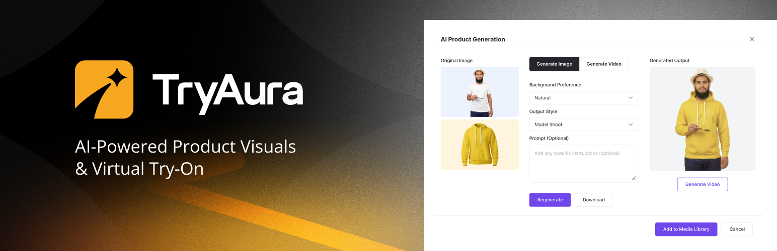 wordpress.org/plugins/tryauraUpgrade your WooCommerce store with AI-powered product images and virtual try on, using your existing products.