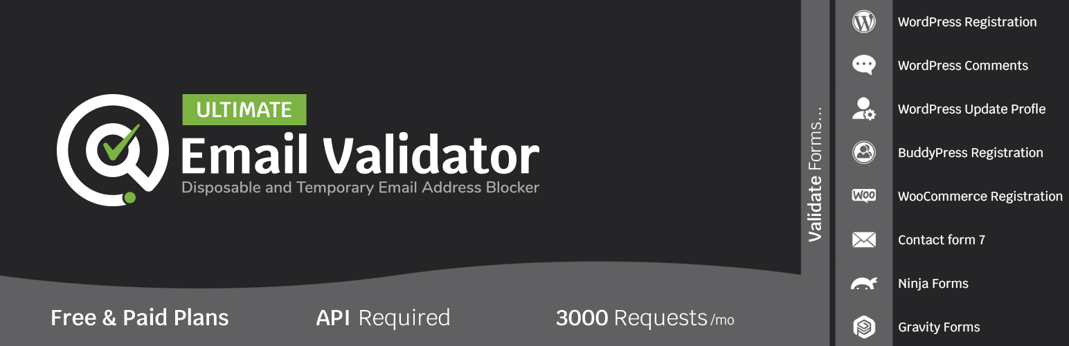 wordpress.org/plugins/ultimate-email-validatorEnhance Website Security: Stop Fake, Temporary, and Disposable Emails Across Registration, Contact Form 7, Mailchimp, Woocommerce, and More!