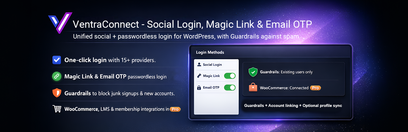 VentraConnect – Social Login, Magic Link & Email OTP (Passwordless) Maintenance & Trust