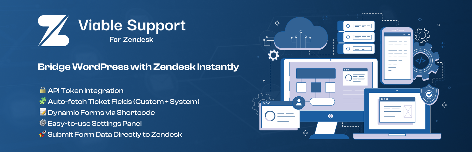 wordpress.org/plugins/viable-support-for-zendeskConnect your Zendesk Support account with WordPress — create tickets, sync custom fields, and automatically convert comments into Zendesk tickets.