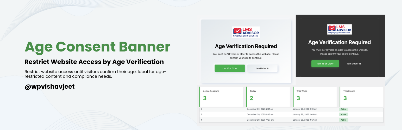 wordpress.org/plugins/vishavjeet-age-consent-bannerRestrict website access until visitors confirm their age. Ideal for age-restricted content and compliance needs.