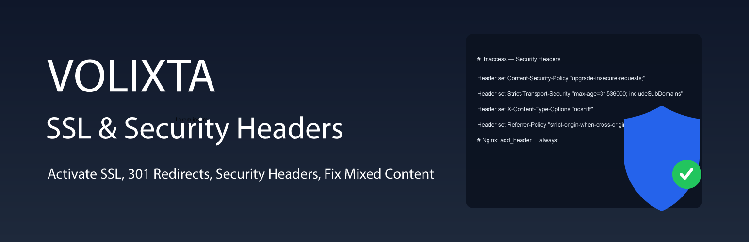wordpress.org/plugins/volixta-ssl-security-headersAdd modern security headers, enable SSL/HTTPS, fix mixed content, and force 301 redirects for WordPress. Fast, safe, and easy to use.