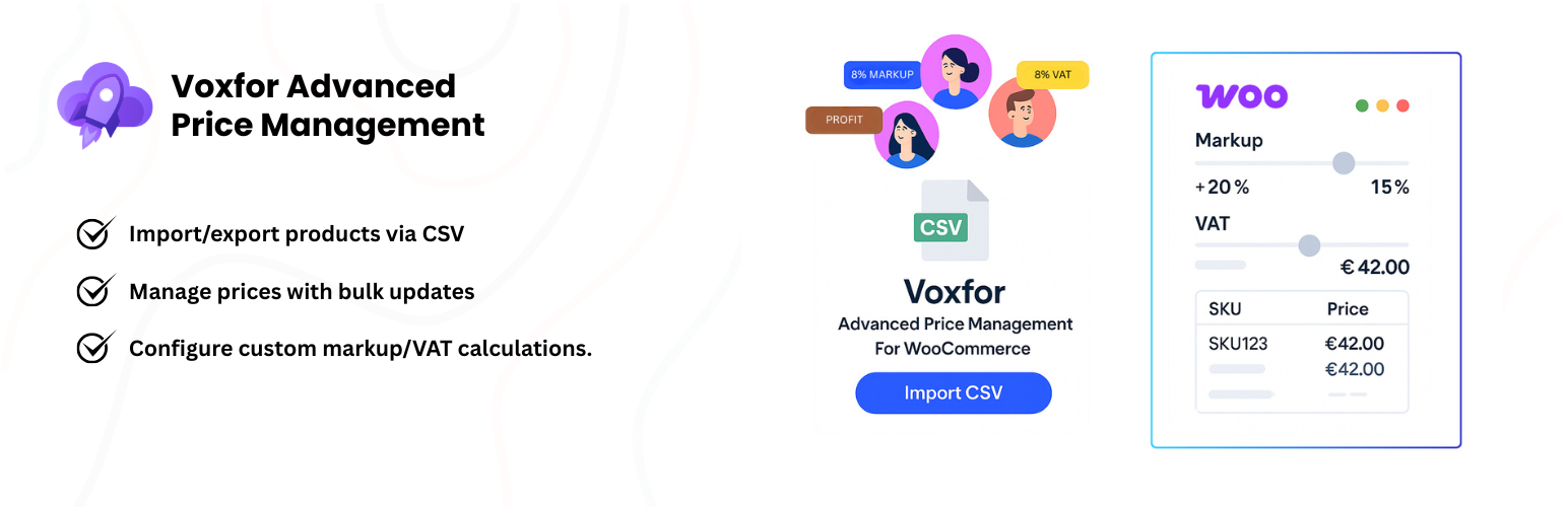 wordpress.org/plugins/voxfor-advanced-price-management-for-woocommerceTransform your WooCommerce pricing workflow with advanced CSV import/export, bulk updates, markup calculations, and easy price management tools.