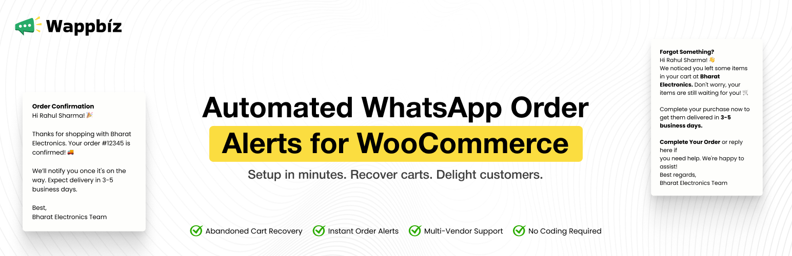 Track abandoned carts for logged-in and guest users in WooCommerce, send automated WhatsApp reminders, and gain insights into cart recovery and abando …