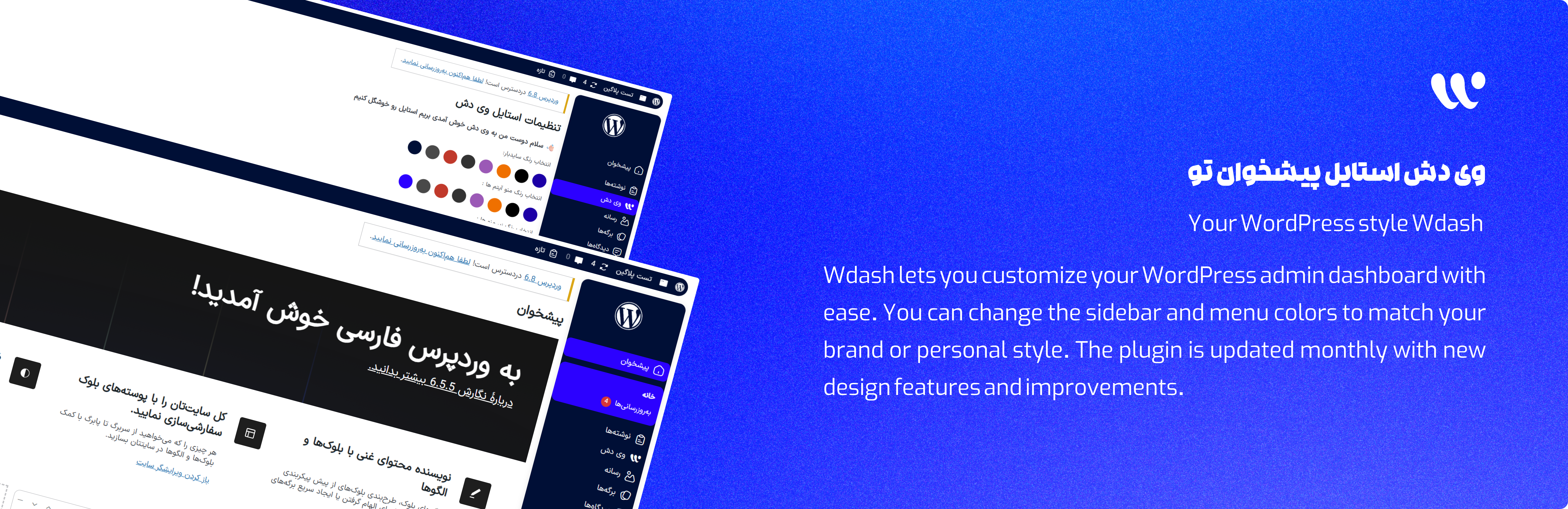 wordpress.org/plugins/wdash-dashboard-styleWdash Admin Dashboard Style allows you to easily change the appearance of your WordPress dashboard to match your personal taste.
