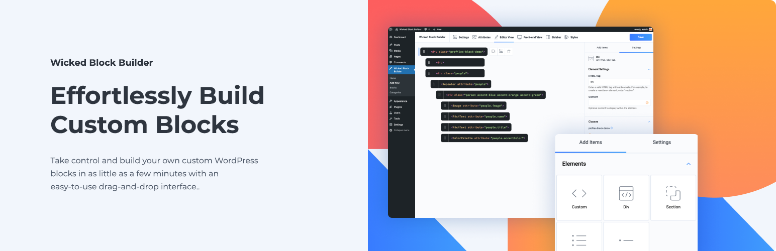 wordpress.org/plugins/wicked-block-builderCreate your own custom blocks and patterns in as little as a few minutes!