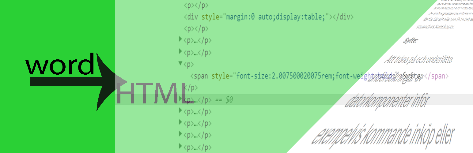 wordpress.org/plugins/word-to-htmlDisplay some html from one or more word files from your local webserver or an external webserver.